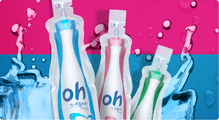 Para embalar tudo isso, a gente precisava ter mesmo uma solução incrível. Em 2017, colocamos a Oh A Água nas prateleiras com sua nova roupagem, uma garrafa ecológica que utiliza apenas um único material 100% reciclável. Garrafas PET, de vidro e tetra geram de 4 a 5 resíduos em sua produção e descarte, enquanto a Oh A Água reduz esse impacto em 75%. | ![]() |